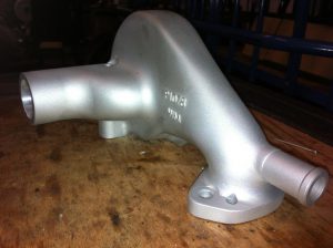 Het oude pomphuis was helemaal versleten. Helaas was hij niet meer te leveren en kon niet meer gemaakt worden, er waren geen gietmallen meer. Deze is opgemeten en omgezet naar een 3D -tekening en vervolgens uit  2 massieve delen aluminium gefreesd. Vervolgens gelast en afgewerkt zodat het pomphuis er weer als origineel uitzag.